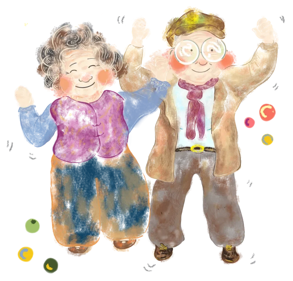 嗨!我是创创,这位是我哥哥学学——我们是一对已经七十多岁的龙凤胎哦!我们特别相信齐心协力,大家手牵手一起向前走,就是最好的事!